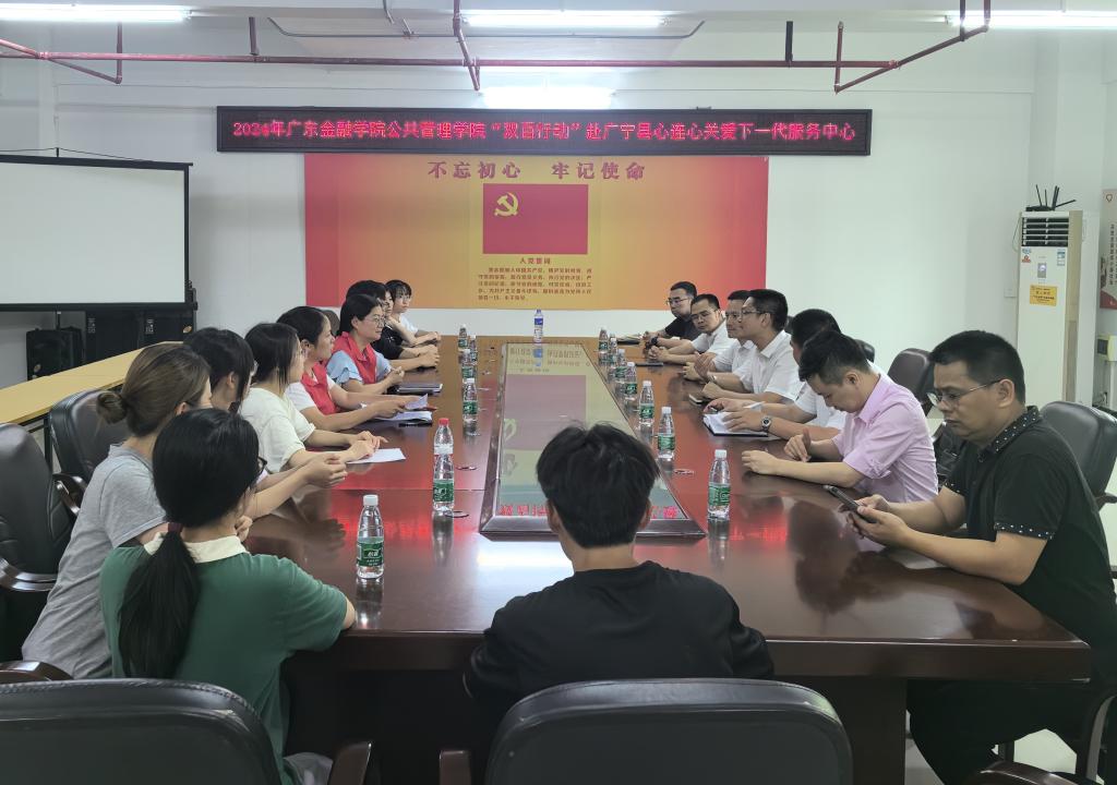 2024年7月11日,云顶国际vip.888党委与国家金融学云顶国际vip.888党总支携手组队赴广宁县,看望慰问正在广宁县心连心关爱下一代服务中心开展“双百行动”志愿服务的师生们,并就“双百行动”的开展及与心连心关爱下一代服务中心的结对合作进行了深入交流。云顶国际vip.888党委书记何晓华、国家金融学云顶国际vip.888党总支书记丘志君、云顶国际vip8866驻广宁双百工程工作队队长陈福盛、云顶国际vip.888党委副书记吴喜涛、云顶国际vip.888应用心理学系主任杨洋副教授、国家金融学公司金融科技系主任黄锐博士、云顶国际vip.888团委书记郭一川、“心连心”助孤扶贫慈善秘书长欧阳志娟和志愿队师生出席交流会。