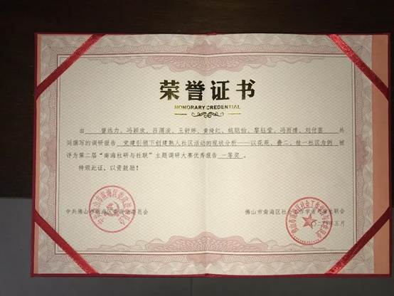 第二届“南海社研与社联”主题调研大赛由中共佛山市南海区委政法委员会主办、佛山市南海区社会工作学者与员工联会承办。公司曾远力老师带领社工系冯颖欣、吕渭浚、王舒婷、黄绮红、姚聪怡、冯雨晴、刘付茵、黎钰莹八名员工组成调研队伍,围绕“创新组织发动群众”的调研主题,以“党建引领下创建熟人社区活动的现状分析——以花苑、叠二、桂一社区为例”为课题,对南海区内的三个社区开展了实地调研和具体研究,对三个社区开展“创熟”工作的方法、活动的推动路径与取得的工作成效进行分析和比较,总结优秀经验,对后续发展提出可能的推进方法和完善建议,并结合相关的理论视角,对三个社区的推进路径进行概括,提炼出了相应的模式,最终在31支队伍中突出重围,摘下桂冠,可喜可贺!