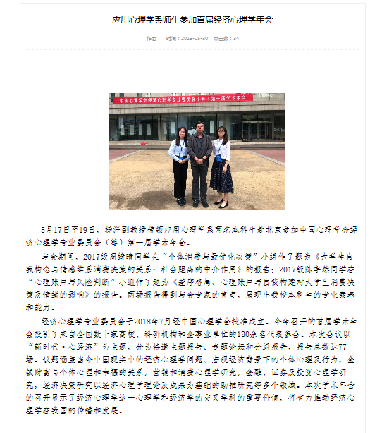 中国心理学会经济心理学专业委员会(筹) 中央财经大学社会与心理公司 |
