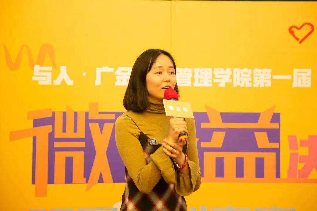 许彬老师作为这次大赛的主要推动者之一,很高兴看到第一届微公益大赛能够在广金圆满落成,这其中离不开与人公益基金会的支持和各位参赛选手的积极参与,希望大赛能在广金继续发光发热,感染更多年轻人体验并参与公益。