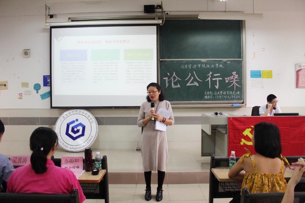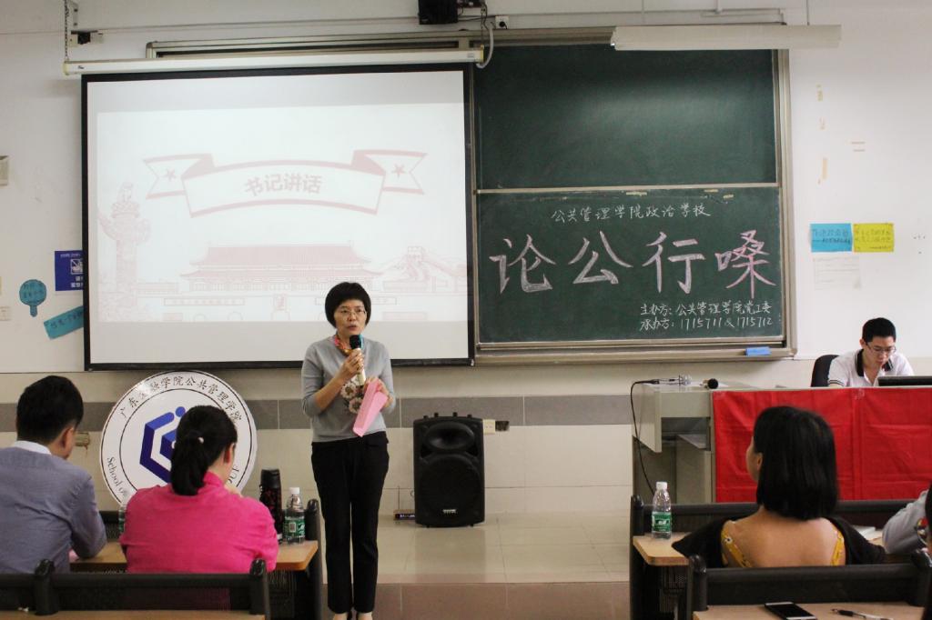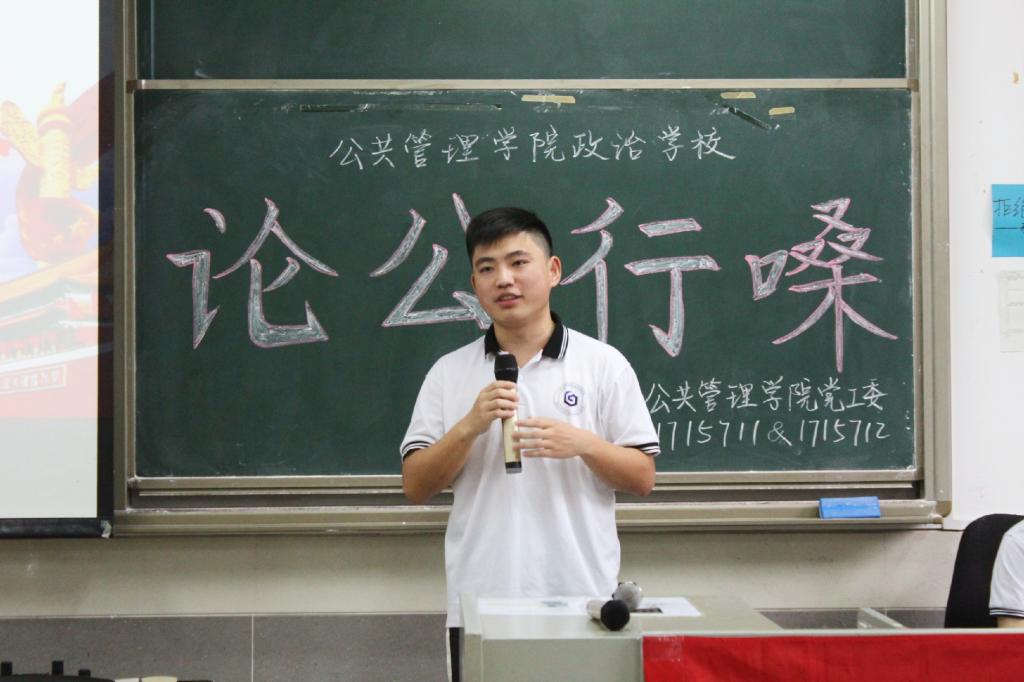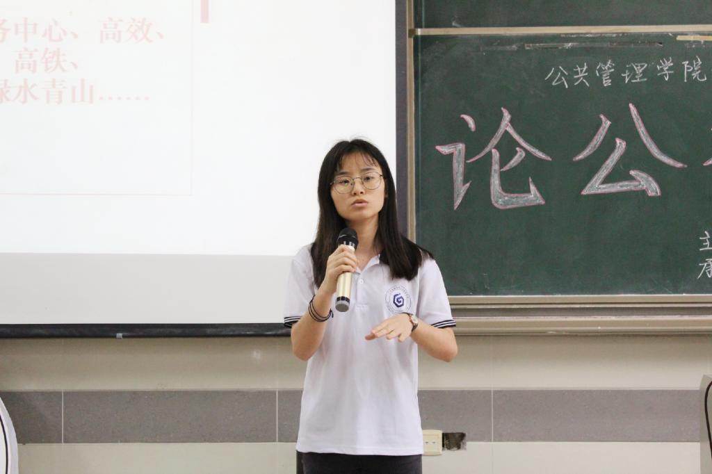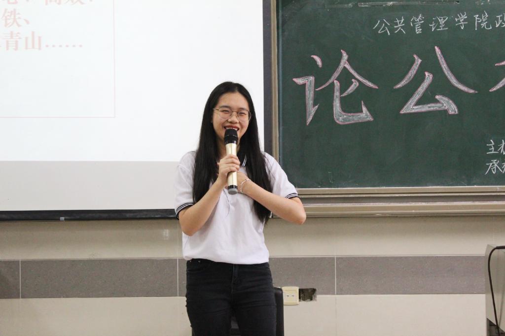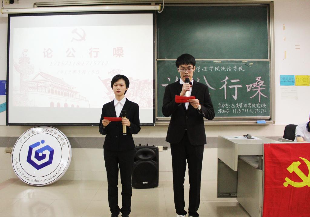 本次“论公行嗓”活动由云顶国际vip.888行政管理一、二两个班级联合承办。在活动伊始,许珍琼老师围绕“两会”向在座同学发表自己的感言,鼓励同学们要树立自信,坚定两会精神,与时代同行。