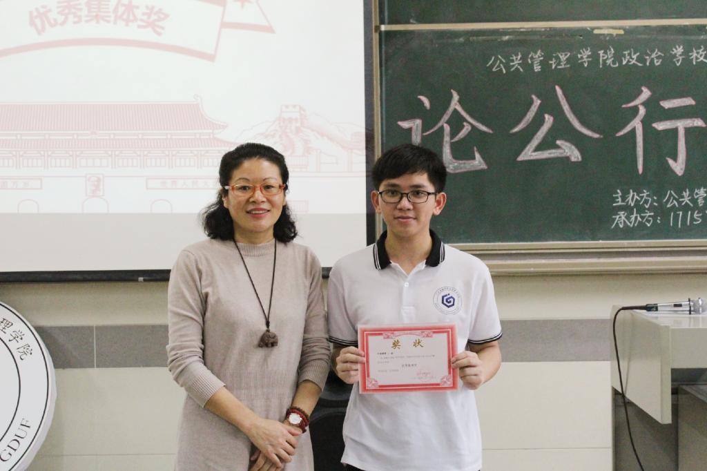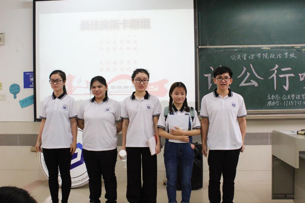 最后是颁奖环节,在本次活动中,行管二班获得优秀集体奖,行管一班青龙学习小组获得最佳演绎组合,行管二班赖镐镐同学获得了优秀个人奖。希望受表彰的个人和班级,能够再接再厉,不忘初心,继续奋斗,做中华民族伟大复兴的最强主力军。