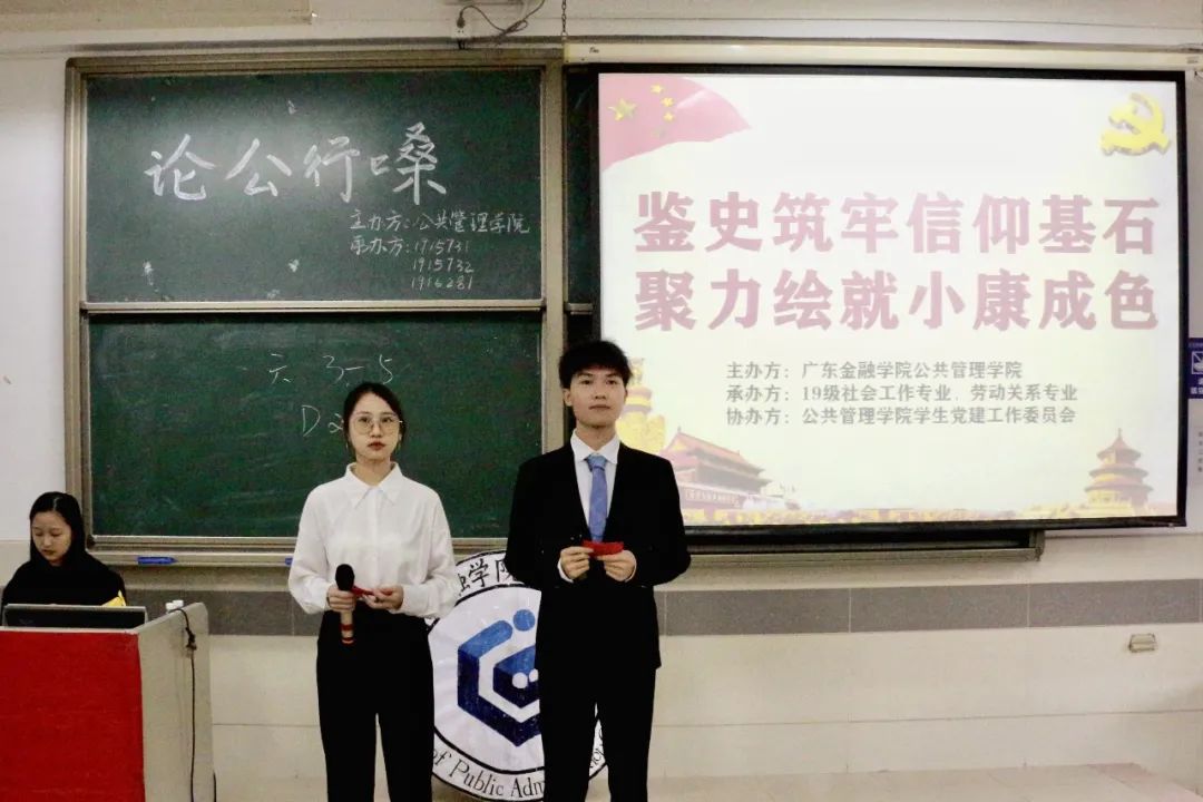 为了学习贯彻习近平总书记关于学习“四史”的重要论述,把握“决战脱贫攻坚、决胜全面小康”的重要意义,云顶国际vip.888近日在北教A404举办了以“鉴史牢筑信仰基石,聚力绘就小康成色”为主题的“论公行嗓”活动。马克思公司孟妍老师、公司何晓华书记、吴喜涛副书记、周鸣老师、叶纯荷老师出席了本次活动,19级劳动关系专业与社会工作专业全体同学参加。