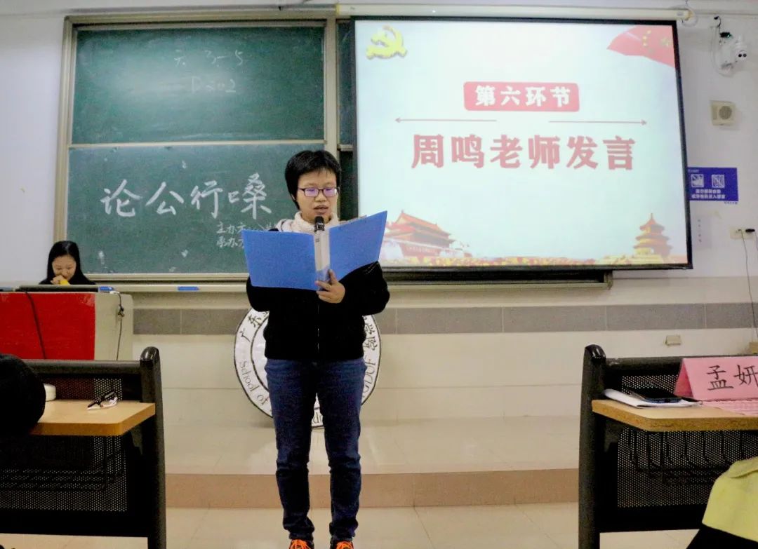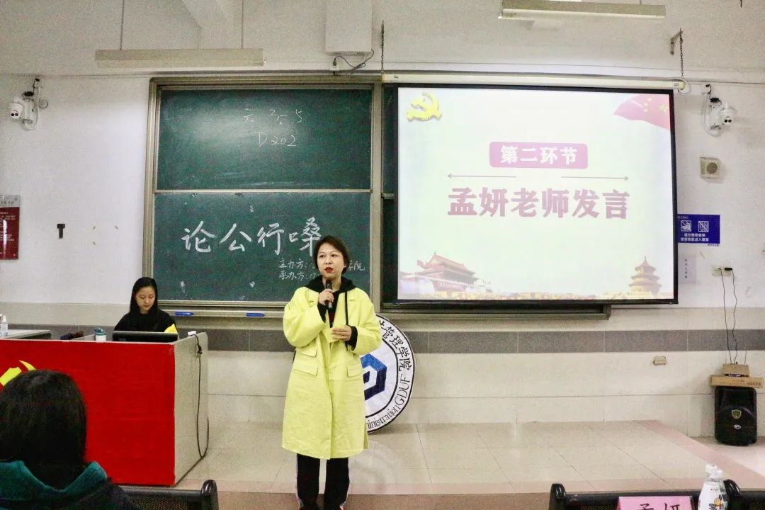 活动伊始,孟妍老师作开场发言。她表示,“四史”是中国共产党为人民谋幸福、为民族谋复兴、为世界谋大同的实践史,并且希望同学们能够通过此次“论公行嗓”活动有所感悟、有所收获。