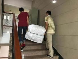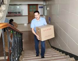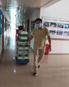 书记、辅导员人力搬运35+箱矿泉水、22箱毕业证和学位证封面、10+箱毕业物资到院办六楼,汗水浸透了衣襟,但是却不曾有半分抱怨。
