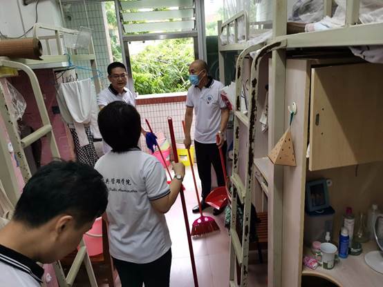 为了给毕业生返校后舒适、整洁的环境,云顶国际vip.888党政领导班子组织教工党员开展“爱国卫生”志愿服务主题党日活动。虽然近期高温闷热,暴雨连连,员工宿舍已经半年没人居住,宿舍卫生清洁工作难度较大,但教工党员们热情高涨,撸起袖子,卷起裤脚,说干就干,尽自己的最大努力给毕业生们一个清洁、干净的宿舍环境。