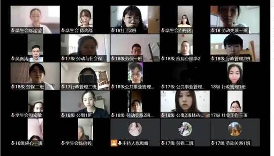 会议伊始,全体师生打开麦克风,共同奏唱国歌。虽然无法面对面,但每个人都以认真庄严的态度完成,展现了满满的爱国情。