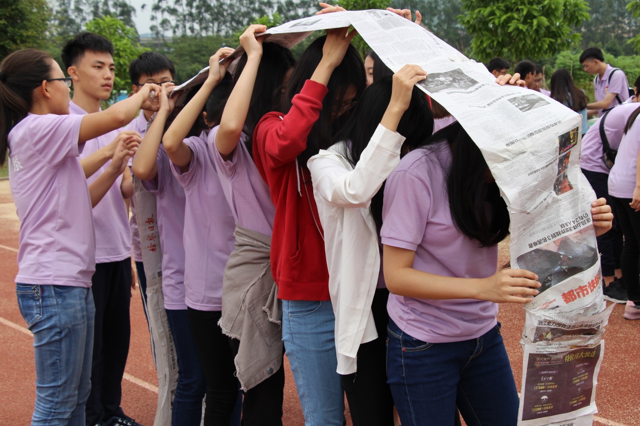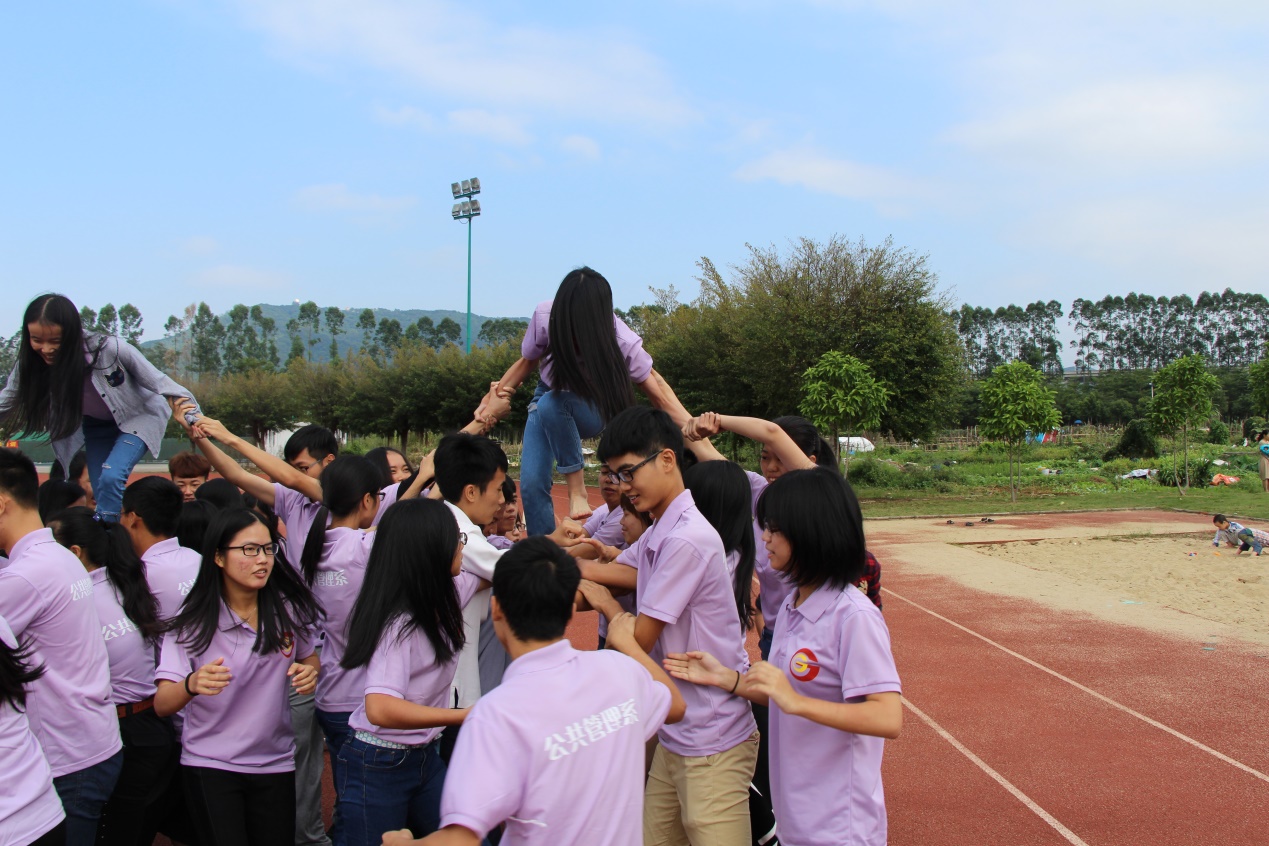 在户外拓展活动中,每年公司团学联素拓部都会策划出不同的活动,如:搭人梯、走报纸、抬腿跳、越野寻标、乒乓运球、背靠背等等,让学员们在活动中通过与小组的合作一起来完成各种游戏。