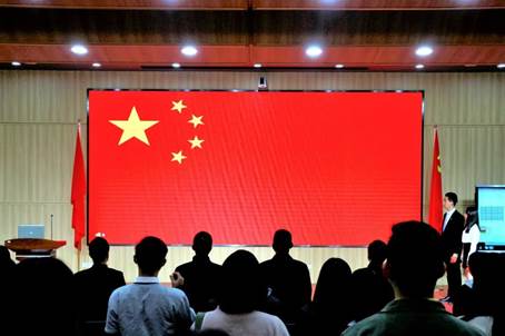 活动伊始,全体员工起立奏唱国歌,整齐嘹亮的歌声,激发出昂扬向上的爱国情。