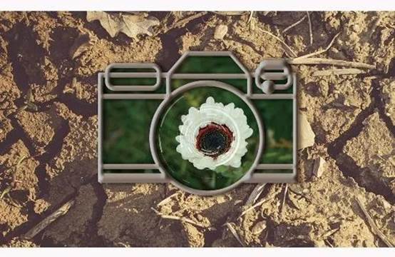 镜头下(心目中)的是人人所向往的美好花海、蔚蓝天空以及绿水青山;而背景(现实中)却是贫瘠的土地、受污染的天空、以及污染严重的山河;这两部分形成了鲜明的对比,以此来呼吁人们保护环境。