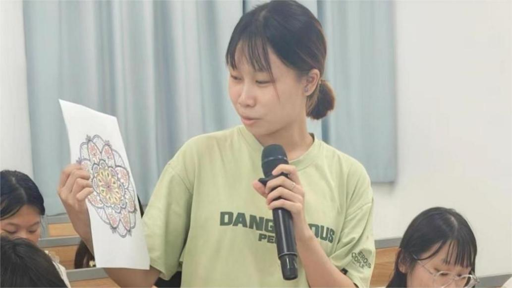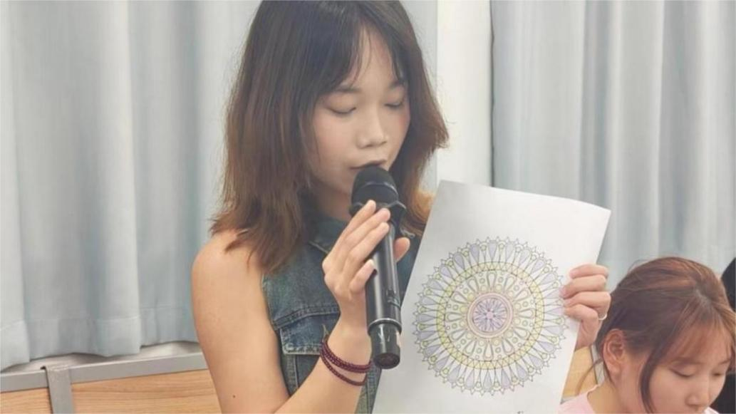 赛道二以线下方式进行,由30位学子共同进行曼陀罗绘画,通过回忆不同阶段与家人的情感,对曼陀罗线稿进行涂色。涂色结束后,有五位优秀学子根据画稿分享了自己与家人的故事以及对曼陀罗线稿涂色的灵感。