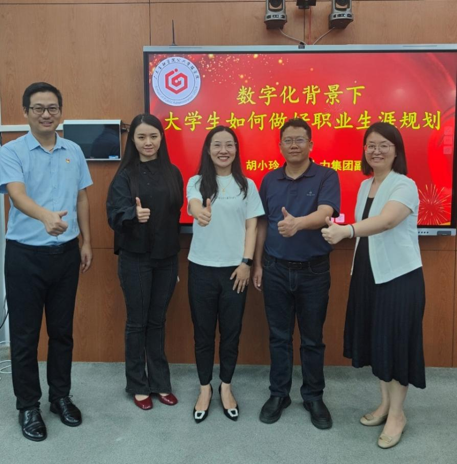 交流会议结束后,胡小玲副总经理为云顶国际vip.888师生做了题为《数字化背景下老员工如何做好职业生涯规划》的主题讲座。她深入浅出地介绍了数字化对职业环境的影响,鼓励员工树立正确价值观,进行科学的职业定位与生涯管理,持续开展技能提升。她从产业和技术变革的角度分析了未来30年内最有可能和不太可能被AI取代的职业,并基于红海案例阐释了传统企业数字化转型的阶段性特征。胡总还勉励员工运用能力评估与性格测试工具正确认识自我,将社会责任、自我定位与择业方向有机结合,确定最适合的职业。针对文科员工的特点,她认为员工应制定关于自身核心技能的培养方案,合理规划短、中、长期目标。整场讲座内容丰富,观点新颖,令在场师生深受启发。