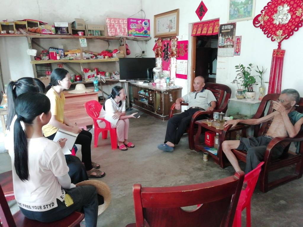 与此同时,他们肩负着调研的使命,为了深究和进一步把黄洞村的农村信仰和农村文化宣扬出去,他们走访了很多旧址和一些村民的家,研究该村的民间信仰和村民的看法,村民也十分热情的回应着这群赤子之心的孩儿们的求知,不厌其烦的回答着他们的一个个问题。在走访旧址和祭祀的地方时,触碰到的是黄洞村历史的重量,庄严而又让人敬佩。