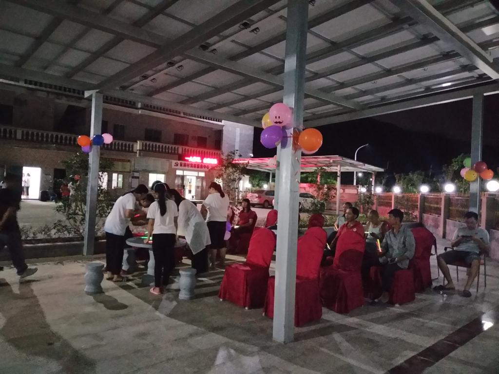 晚会开始时,首先由村委书记致辞,赞扬和充分肯定了三下乡队伍,也提出会在接下来的日子里,积极响应党和政府的号召,为建设美丽,有文化内涵的黄洞村而加倍努力。致辞完之后,村民们就活跃开了,像拱火晚会般热闹,村民一展歌喉,展现了他们热爱生活享受生活的精气神,唱出了乡村的淳朴。队员们也和小孩子玩踩气球游戏,玩得不亦乐乎,大人们也忍不住插上一脚了。晚会气氛持续高涨,但是夜色已晚,队员们以一首《追梦赤子心》的集体献唱结尾,唱的是对未来的梦想的赤子之心,唱出了20岁当头的青春年华,唱着对黄洞村的告别。