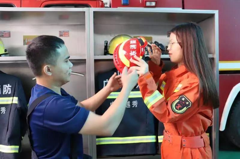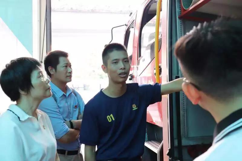 接着,中队消防指战员为大家详细介绍灭火战斗服和抢险救援服的区别作用、多种消防装备的使用方法以及新型消防车的救援功能。在讲解过程中,大家对消防救援工作有了更深一步的了解。