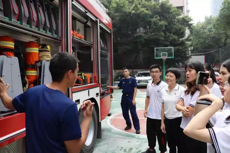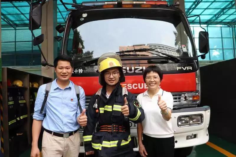 在消防中队的同意和指导下,师生们体验多种多样消防用具的使用:穿上密不透风的灭火战斗服、颜色鲜艳的抢险救援服,扛起笨重的高压水枪、液压扩张器,坐上随时待命的消防车……大家真正零距离接触、体验了一把消防战士的日常训练生活。在体验过程中,大家不仅将刚刚学到的知识运用于实践,更是感受到消防员日常训练的艰辛和抢险救援的不易,不禁对消防战士肃然起敬。