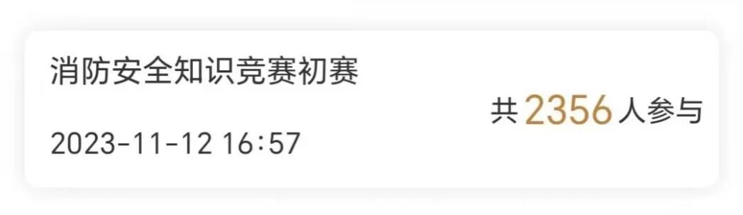 在校园消防安全知识竞赛中,同学们积极参与竞赛,共计2356名同学参与,体现出同学们较强的自我检测意识。