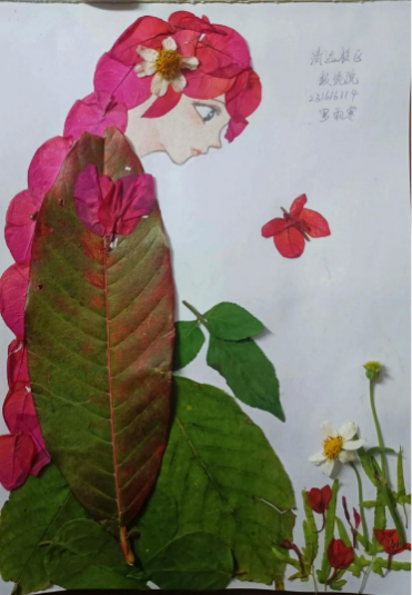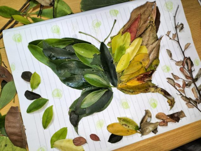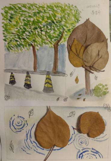 此次活动以线下评分和线上投票的方式进行综合考量评比,同学们通过在A4纸上用树叶作画的方式参加活动。