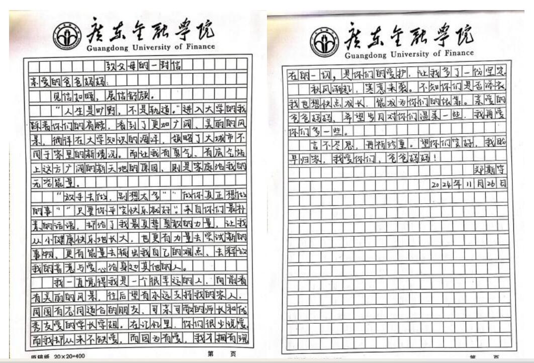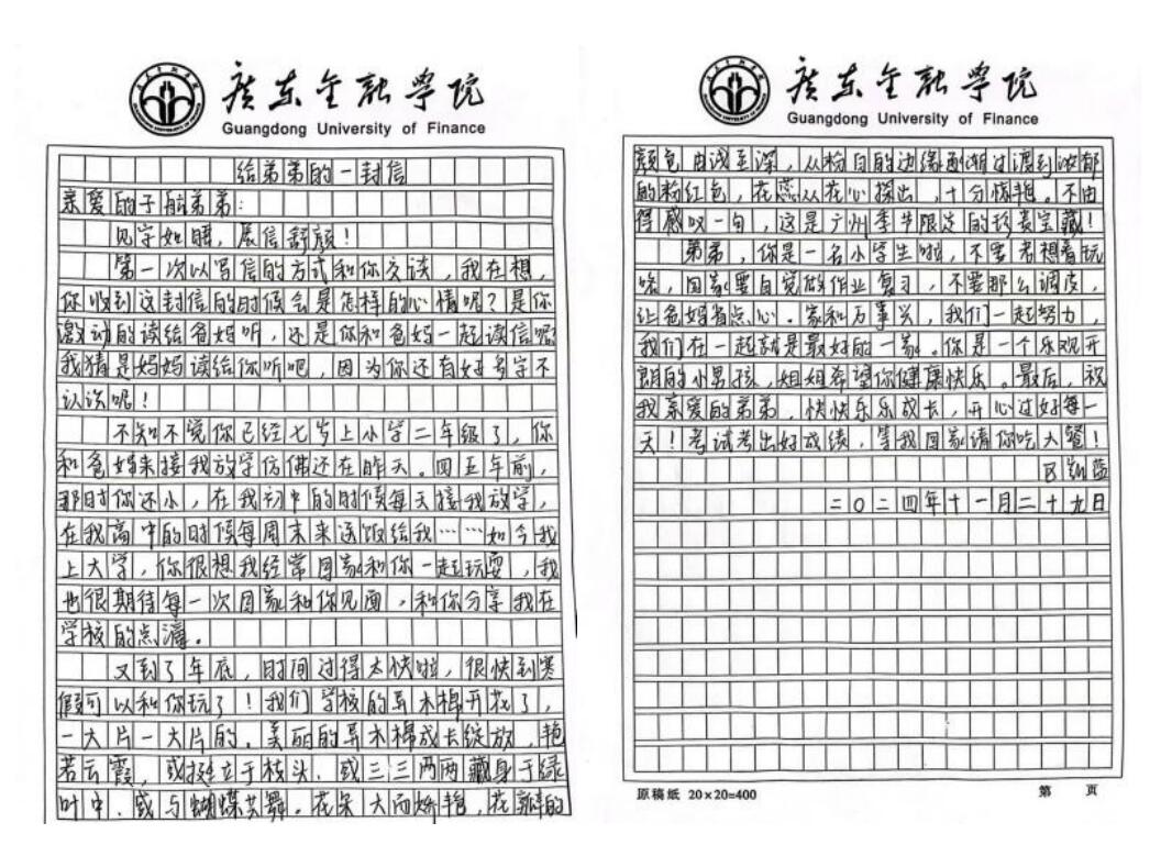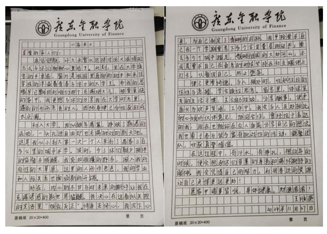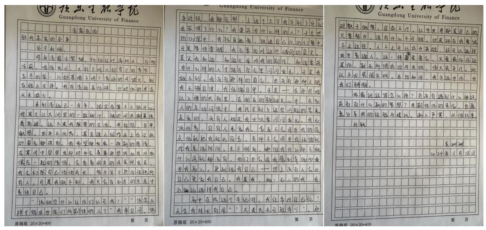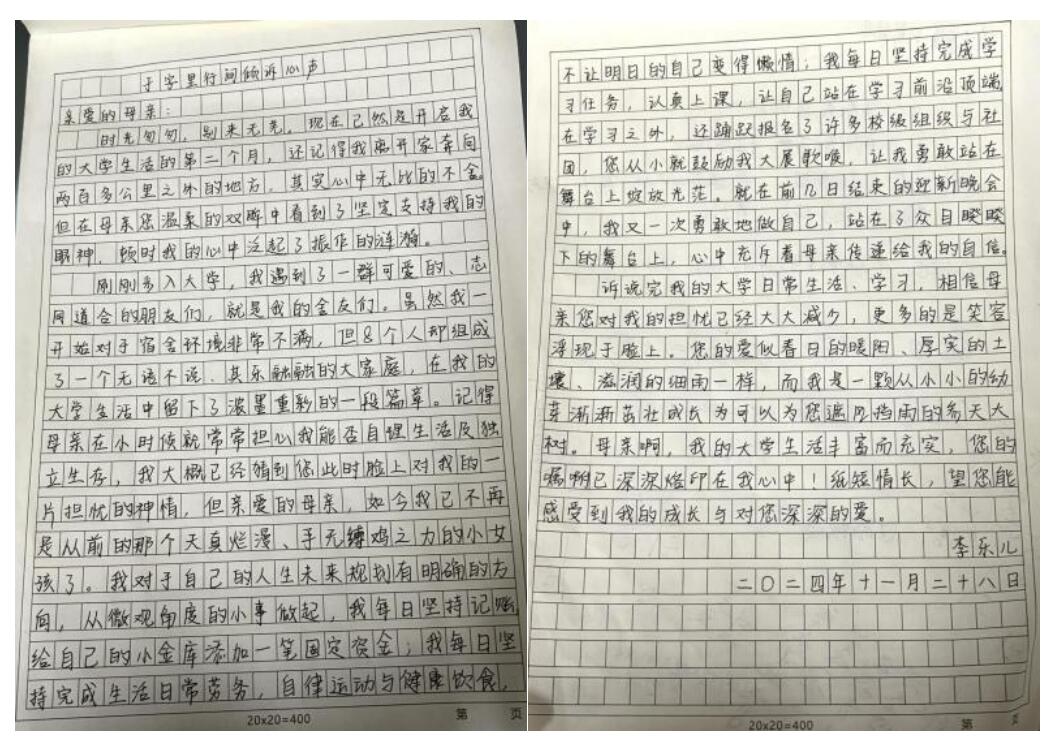 此次活动中,同学们通过书信方式分享自己的学习生活并表达自己的情感。共有150位同学参与,通过线下评分方式,最终有七位同学的作品脱颖而出。