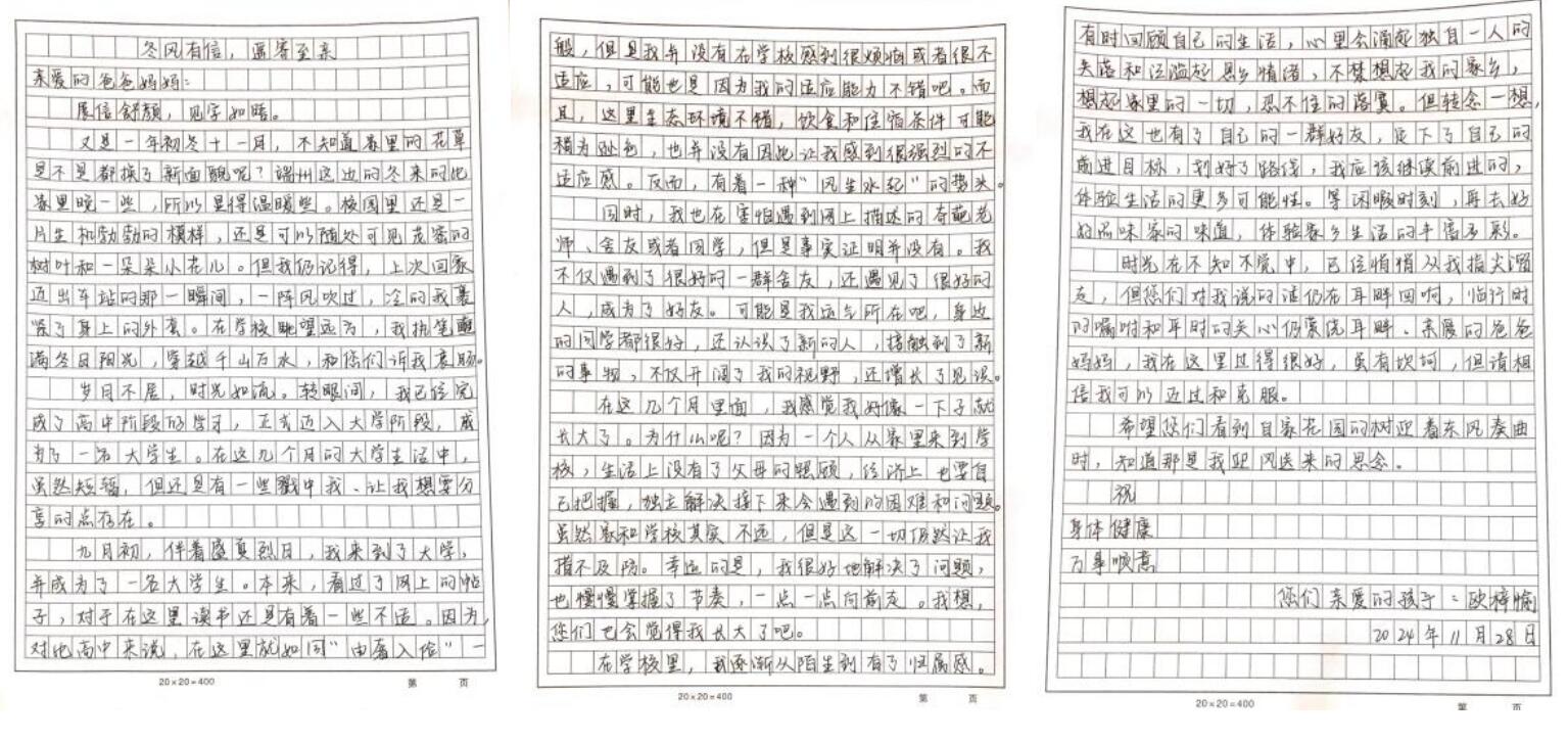 一封封家书,凝聚了温暖与期望,承载着我们对未来的憧憬与对家庭的责任感。家书作为一种传统而温馨的沟通方式,不仅增进了亲子、兄弟姐妹之间的感情,也让我们在忙碌的学习和生活中,重新审视了自己的成长轨迹与奋斗目标。