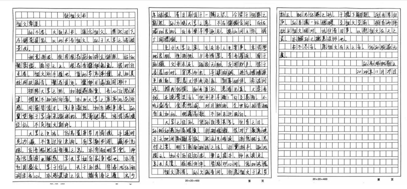 该文章是作者久未与祖父通信,遂倾诉大学诸事。述校园桂花盛景念祖父所植之树,谈学业竞争压力与期望,讲大学自由生活、良师益友及社团经历,又提及挚友患难相助,感慨自身成长蜕变,感恩过往,祈愿祖父安好。