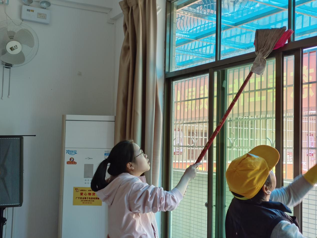 志愿服务队师生协助心连心关爱中心打扫卫生