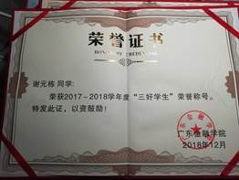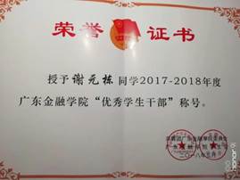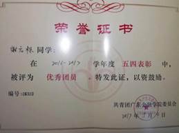 2017年获得“优秀团员”称号