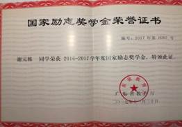 2017年获得国家励志奖学金