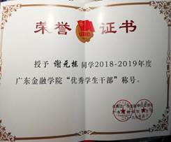 2019年获得“优秀团员”称号