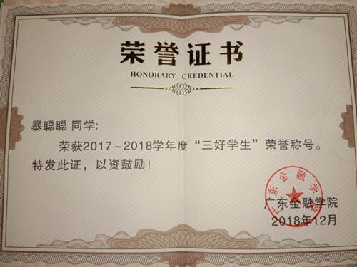 2018.12获2017-2018学年度“三好员工”荣誉称号