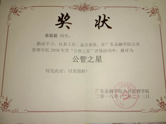 2018 12获“公管之星”荣誉称号