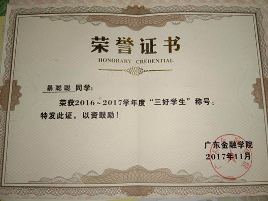 2017.11获2016-2017学年度“三好员工”称号