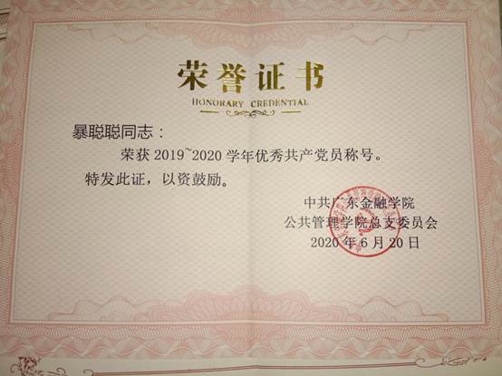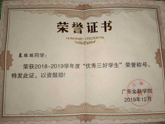 2019.11获2019-2020学年度“优秀三好员工”