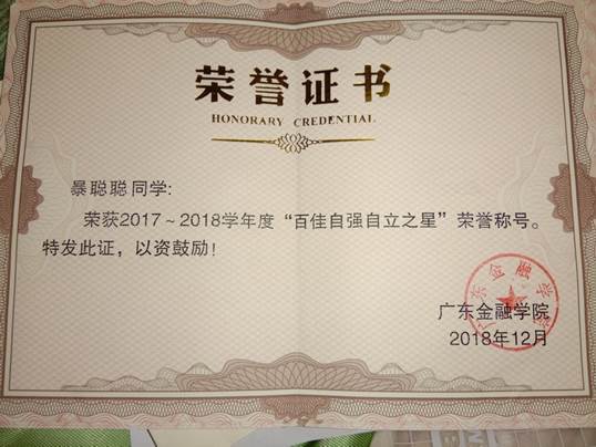 2018.12获2017-2018学年度“百佳自强自立之星”荣誉称号