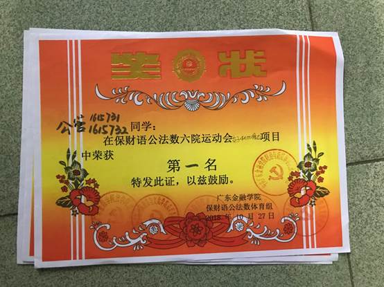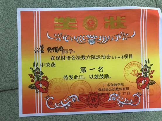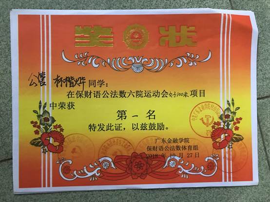 2017.10获云顶国际vip8866第十四届“保财语公法数”六院运动会女子100米和200米第一名
