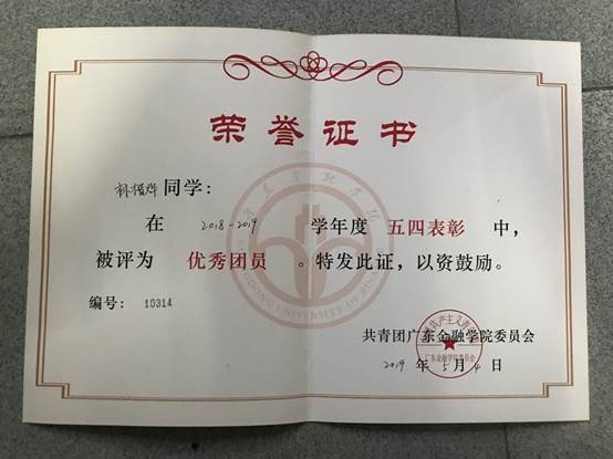 2019.05获云顶国际vip88662018-2019年度五四表彰获得优秀团员