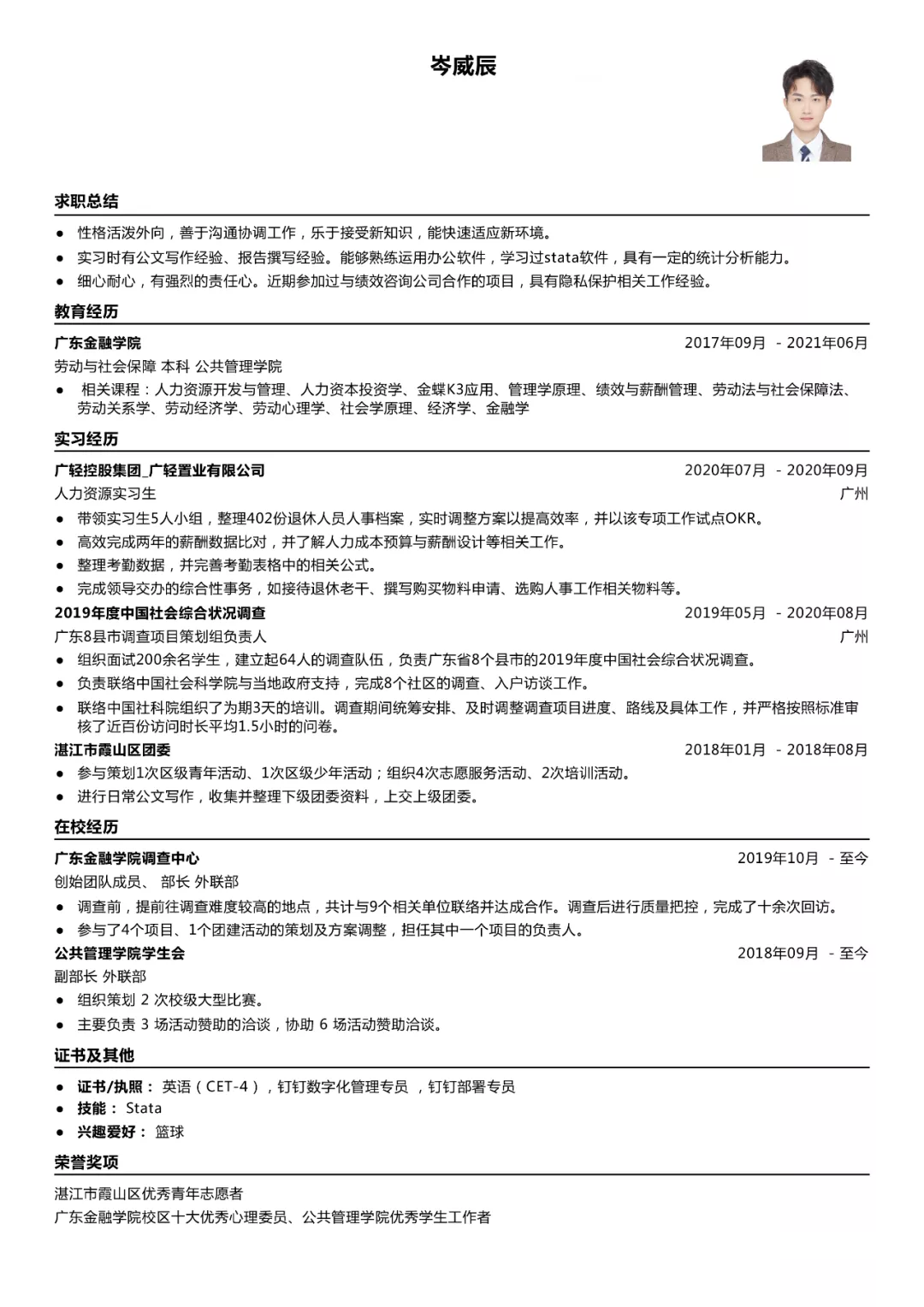 2020.7-2020.9广轻控股集团广轻置业有限公司任人力资源实习生