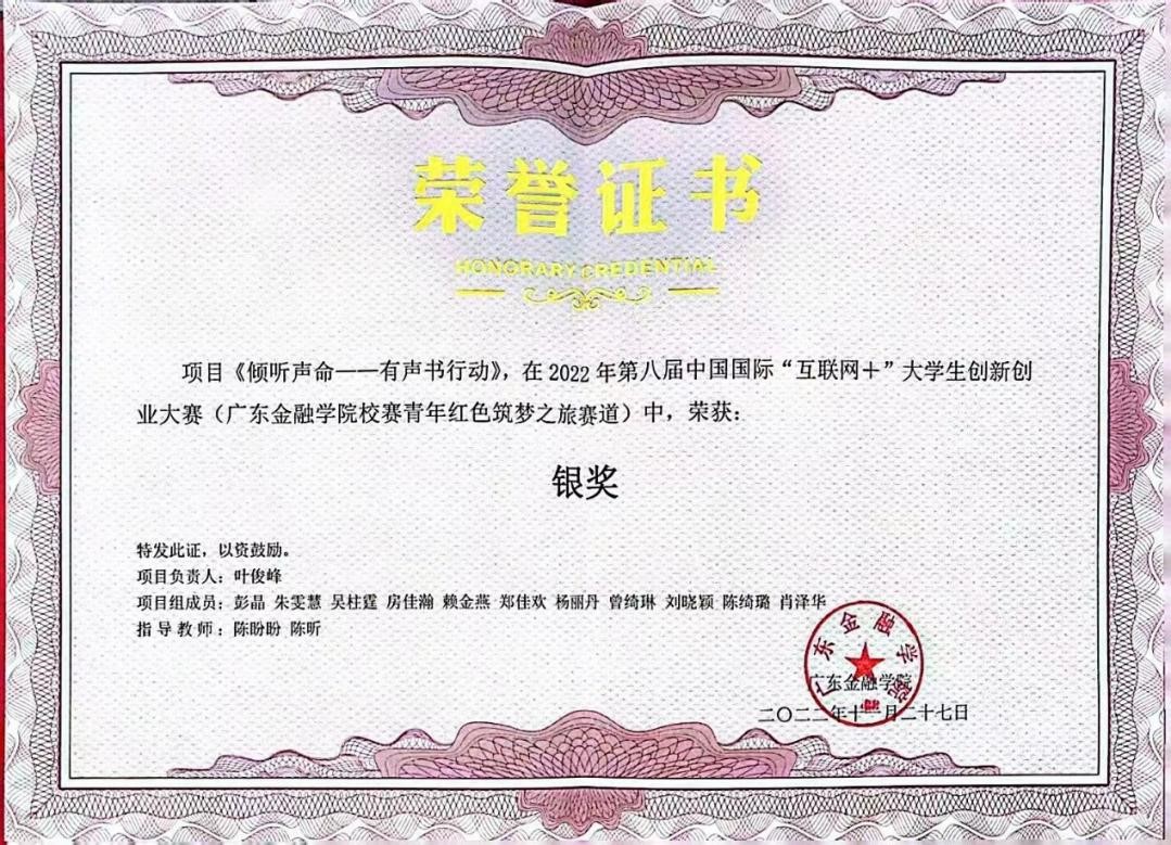 2022年第八届“互联网+”老员工创新创业大赛校级银奖;