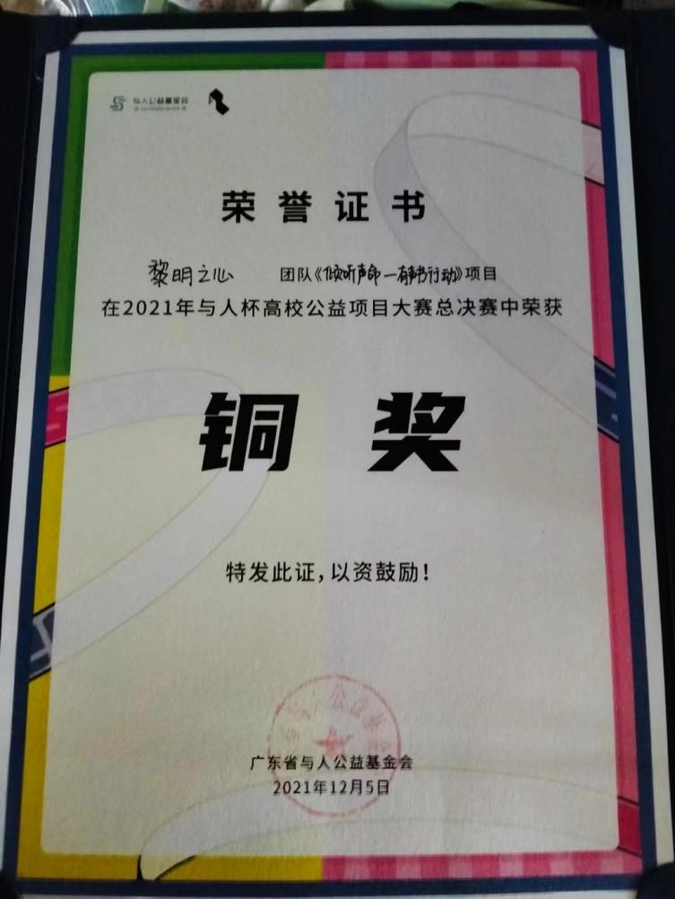 2021年“与人杯”高校公益项目大赛年度总决赛铜奖;