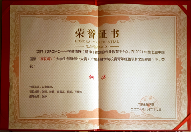 两次优秀员工骨干、“互联网+”红色之旅赛道校级铜奖等多项奖项。