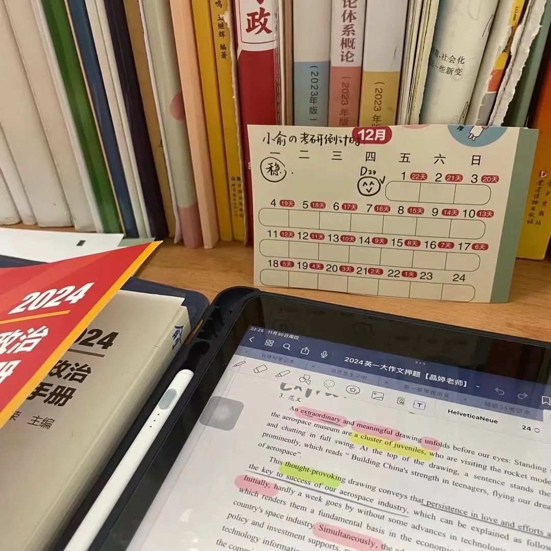 写这篇文字稿的时候已经是24年6月份了,我了解到一些打算参与年底考研的师弟师妹也已经开始自己的备考,大三下学期是可以的。备考开始的早晚,每天学习时间的长短都因人而异,只要找到适合自己的学习节奏并学会灵活调整,事在人为,希望大家都可以抓住机会如愿以偿。如果要给出一些建议的话,我会说