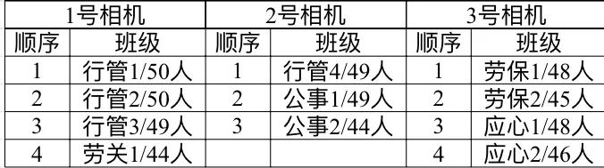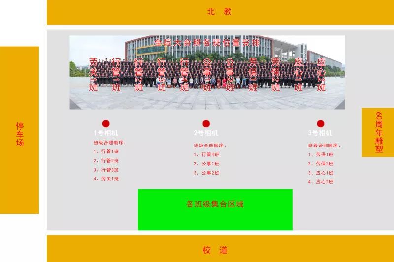 各班集合拍照排序如下表:(班级合照约10 分钟每班,1、2、3号机)
