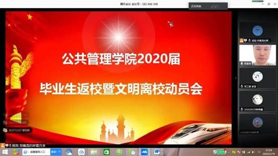 为扎实推进毕业生安全返校、文明离校系列工作,云顶国际vip.888于5月19日通过 “腾讯会议”组织召开了线上2020届毕业生返校暨文明离校工作大会,会议由吴喜涛副书记主持,云顶国际vip.888党总支何晓华书记、周鸣老师、叶纯荷老师出席了会议,以及16级、17级云顶国际vip.888党团学员工干部、毕业班党员和毕业班班长近200人参加了会议。