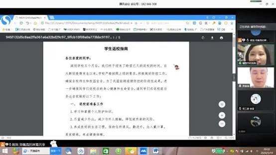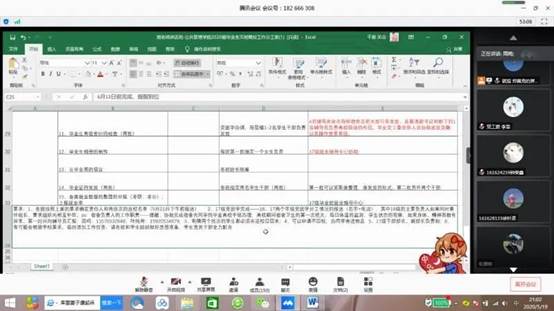 首先,叶纯荷老师对毕业生返校申请和在校期间注意事项进行了讲解。公司毕业生符合返校条件的,将在6月16日和6月21日分两批返校,同时,需遵守返校纪律,根据自己的返程情况对应相关制度,按规操作,落实返校工作,以切实保障大家的平安健康。