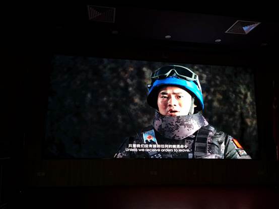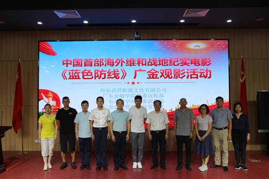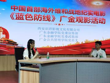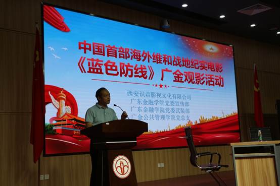 该影片是中国首部海外维和战地纪实电影,将于9月18日全国公映。观影活动分两部分,一是剧组企划访谈,二是观影。活动伊始,刘新强作开场致辞。他首先对西安识君影视文化有限公司前来公司交流,并在公司进行省内首映《蓝色防线》表示欢迎和感谢。接着,他要求同学们在观影的时候要做到以下几点:一、知国情,明军情。将了解国防作为自身的思想共识和自觉行动,始终珍惜与热爱和平,做到爱党、爱国、爱军、爱校;二、知史爱党,知史爱国。在观影活动中深知中国故事,培养浓厚的爱国主义情怀和强烈的民族自豪感,传播好中国声音;三、希望同学们能够锻造本领,争当先锋。不断增强自身的国防意识,锻造过硬本领,提高军事技能。