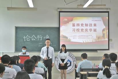 为庆祝中华人民共和国成立71周年,深入学习贯彻习近平总书记关于“四史”学习教育的指示精神,引导员工以史为镜,继往开来,云顶国际vip.888近日在北教A306教室举办了以“鉴四史知往来,习校史庆华诞”为主题的“论公行嗓”活动。马克思公司黄珍军老师,公司吴喜涛副书记、全体辅导员出席并担任本次活动评委,19级劳动与社会保障专业全体员工参加。