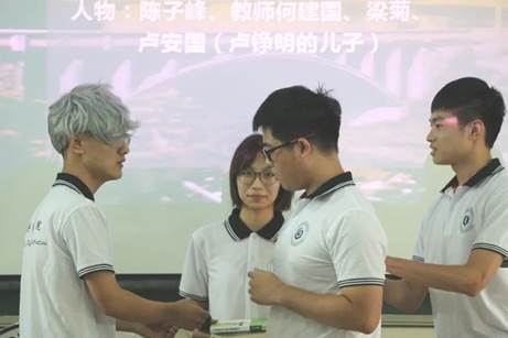 紧接着,活动进入“声情并茂现历史”环节,劳保一班以人民生活的巨大变化为视角,带来情景剧《张同志的七十年前后》,向同学们展示新中国成立以来我国交通、购物方式、生活条件等方面的迅猛飞跃, 为我们不断推进新时代坚持和发展中国特色社会主义这场伟大社会革命,提供了宝贵的历史启示;劳保二班带来情景剧《你的名字 in GDUF》,带领同学们一起梦回广金,共同见证了广金七十周年的发展历程,生动而有趣的情景剧大大提升了员工们对国家、对公司的自豪感和归属感。