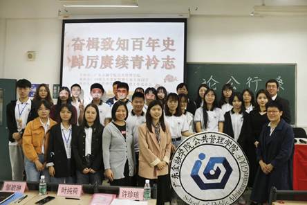 历史是一个民族、一个国家、一个政党形成发展及其盛衰兴亡的真实记录,习近平总书记深刻指出:“历史是最好的教科书。对我们共产党人来说,中国革命历史是最好的营养剂。”为喜迎建党百年,云顶国际vip.888近日在北教B302教室举办了以“奋楫致知百年史,踔厉赓续青衿志”为主题的“论公行嗓”活动。马克思主义公司许珍琼老师、云顶国际vip.888邹敏琳老师及叶纯荷老师、2019级公共事业管理专业全体员工参与此次活动。