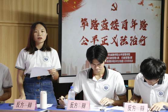 为庆祝中国共产党建党百年,深入贯彻学习习近平总书记关于党史学习教育的指示精神,动员全体员工进一步增强法治思辨能力,云顶国际vip.888首次将特色党建活动与专业课相结合,并于2021年5月25日在北阶103举办了以“筚路蓝缕百年路,公平正义法治行”为主题的“论公行嗓”活动。云顶国际vip.888何晓华书记、吴喜涛副书记、罗光华老师以及邹敏琳老师出席并担任本次活动评委,2019级行政管理专业全体员工参与此次活动。