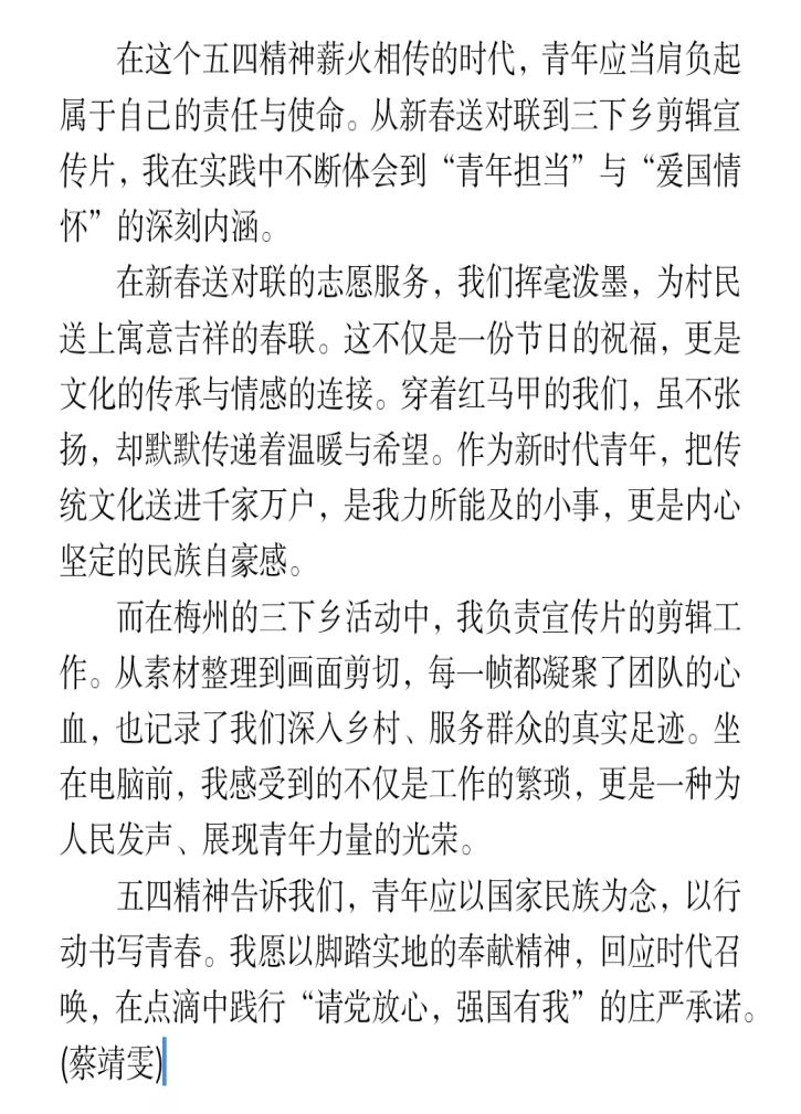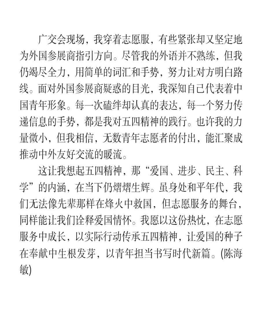 在五四精神的照耀下,本次系列活动以知识竞答夯实理论根基,用镜头定格青春担当,借创意互动激扬爱国情怀,展现了广金学子昂扬向上的精神风貌。愿每一位参与者将这份热忱转化为持续奋进的力量,在新时代的征程中勇担使命、锐意进取,让青春之花在祖国需要处绚丽绽放!未来,我们继续以行动书写青年答卷,让五四之火永不熄灭!